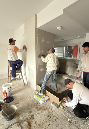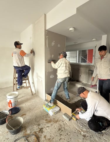 Trabajo con un equipo de carpinteros, albañiles, herreros